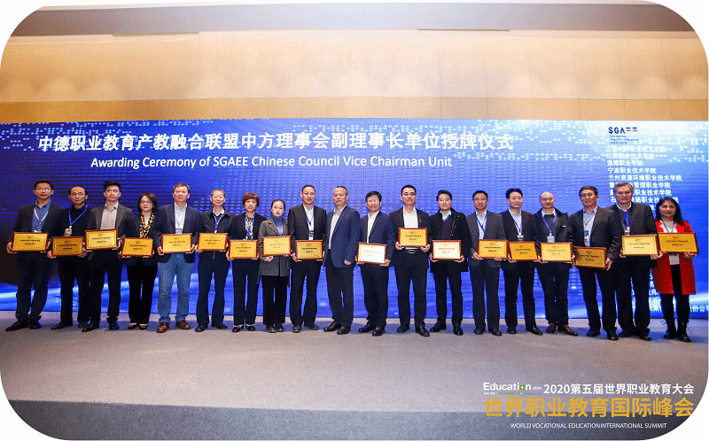 At the 5th China (Qingdao) World Vocational Education Conference in 2020, our college was successfully elected as the "Vice Chairman Unit of the China-Germany Vocational Education Industry-Education Consortium" and the "Pilot Demonstration Unit for Cooperation with Germany of the China-Germany Vocational Education Network". At the same time, our college's "China-Germany Automotive SGAVE Project" and "AHK Mechatronics Project" were rated as "Demonstration Projects for China-Germany Vocational Education and Industry-Education Consortium".